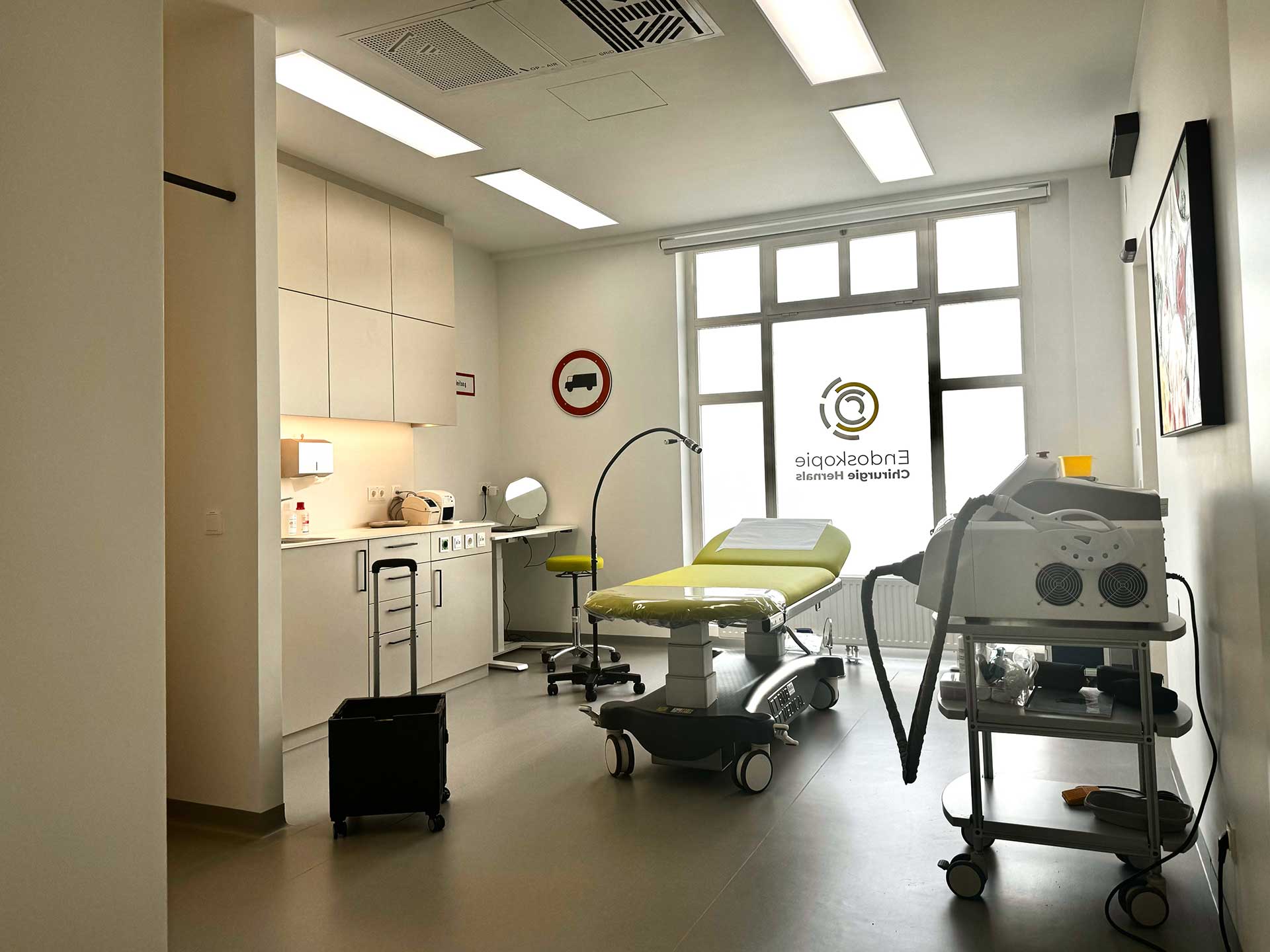 Medizinische Räumlichkeiten optimal geplant durch Architekt GRAF, Endoskopie/Chirurgie Hernals, Einblick in ein Behandlungszimmer, ruhig, hell, clean und freundlich.